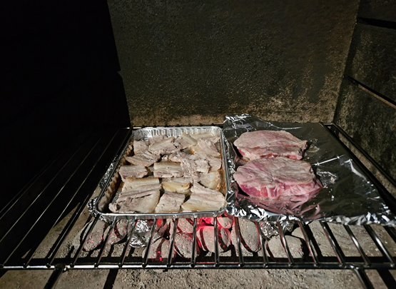 Neuhaus에서 인터라켄 동역으로 돌아오는 버스 시간을 미리 체크하지 못해 정류소에서 한참을 기다렸다. 결국 9시가 다돼서야 그린델발트 숙소에 도착하였고 서둘러 저녁 준비를 하였다. 첫날에 고기 굽기에 여러모로 아쉬움이 있어 쿠킹호일도 구매하여 다시 도전해보기로 하였다. 직원도 너무 늦은 시간이라 거부했지만 부탁하여 자리를 내주었다. 가장 먼저 숯불을 얼른 지피고 반찬을 세팅했다. 첫날보다 더욱 강력하게 지펴진 숯불에 삼겹살이 익어갔고 이곳의 마지막밤을 기념할 준비를 마쳤다.