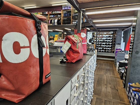 빈사의 사자상과 빙하 공원 구경을 마치고 취리히 공항으로 가기까지 시간이 남아 이곳저곳 둘러보기로 하였다. 먼저 근처 프라이탁(FREITAG) 매장을 둘러보았다. 이곳은 버려진 천막이나 화물차 방수포 등을 가방으로 재활용하는 스위스 업체로 똑같은 제품없이 유니크한 디자인을 연출하여 유명하다고 한다. 직접 둘러보니 하나하나 개성있고 멋진 디자인이 많았지만 재활용품이라 냄새가 심했고 수작업으로 만들어서 가격도 비싸 선뜻 구매할 엄두가 나지 않았다. 그렇지만 이러한 가치를 제품에 적용한 아이디어가 멋졌고 스위스는 여러모로 친환경적인 나라라는 인식이 더욱 강해졌다.