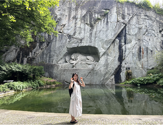스위스 여행의 마지막 날이 찾아왔다. 날씨의 요정은 끝까지 우리와 함께해주었고 화창한 아침을 맞이할 수 있었다. 루체른 숙소는 조식이 포함되지 않아 쿱마트에서 산 봉지라면과 바나나로 끼니를 간단히 해결했다. 오늘은 오전에 빈사의 사자상과 빙하 공원을 구경하고 취리히 공항으로 이동하여 오후 비행기를 탈 예정이었다. 상쾌하고 가벼운 마음으로 호텔을 나와 루체른역에서 버스를 탔고 10분 정도 지나서 바로 빈사의 사자상 근처 골목에 도착하였다.
