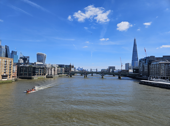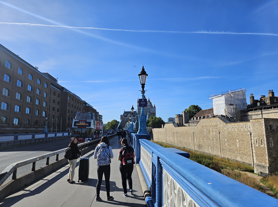 숙소로 잡은 더타워호텔로 향하기 위해 패딩턴역에서 전철을 갈아타고 타워힐(Tower Hill)역까지 이동하였다. 한 달치 캐리어 짐이 무거워 힘들었지만 무사히 숙소에 도착하니 거사를 치른 듯했다. 3시부터 체크인이 가능하여 일단 짐을 맡기고 주위를 둘러보고 식사를 하고 오기로 하였다. 비행기에서 새우잠을 자고 시차에도 적응되지 않아 피곤하였다. 숙소로 잡은 더타워호텔 앞으로 그 유명한 타워 브릿지(Tower Bridge)가 이어졌고 건너편의 시청사는 현대적인 느낌을 물씬 풍겼다. 화창한 햇살이 비추는 템스강(River Thames)을 따라 런던 시내 구경을 시작했다
