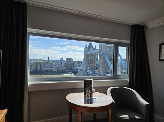 템스강을 따라 30분 정도 걸으니 숙소에 도착했다. 예약한 숙소는 더타워호텔(The tower hotel)로 4박5일 묵을 계획이었고 1년전에 아고다에서 한화 125만원 정도에 예약했다. 가구와 화장실 등 설비가 노후화되어 아쉬움이 있었지만 창문으로 타워브리지와 템스강이 바로 보이는 뷰는 끝내주었다. 7층에 위치한 우리의 룸은 마치 80년대 할리우드 영화 속 한 장면의 스튜디오 같은 느낌이었다.