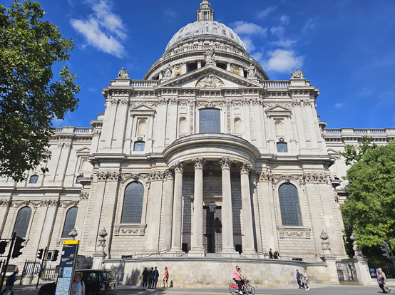 배부르게 먹은뒤 다시 숙소로 걸어서 이동했다. 템스강을 따라서 산책길이 잘되어있어 도시 구경을 하며 한적히 걸었고 중간 중간 런닝을 하는 사람들이 많이 보였다. 멀리 영국의 최고층 빌딩으로 유명한 더샤드 빌딩이 보였고 여러 역사를 지닌 다리들을 지나쳤다. 밀레니엄 시대를 열며 런던의 과거와 현재를 이어주는 보행자 전용 다리로 유명한 밀레니엄 브리지(The Millennium Bridge)를 건너 세인트 폴 대성당에 도착하였다. 하얗고 웅장한 외곽 건축에 매료되었으나 실내로 들어가보지는 못했다. 이곳은 세비야 대성당, 바티칸 성 베드로 대성당과 함께 유럽의 3대 대성당으로 불린다고 한다. 지금 생각해보면 다른 2곳은 들어가보았는데 이곳만 실내를 들어가보지 못한 것이 아쉬움에 남는다.