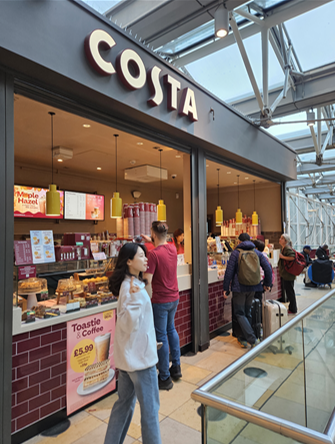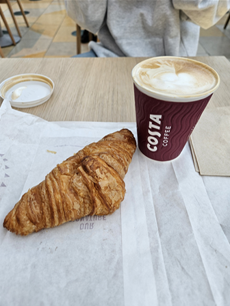 오전 8시22분 출발하여 옥스퍼드에 9시19분 도착하는 GWR 열차를 탈 예정이었다. 서둘러 준비하여 아침을 먹지 못해서 역사에 있는 코스타(Costa) 커피에서 빵과 커피를 먹기로 하였다. 코스타 커피는 영국을 대표하는 커피 브랜드로 영국판 스타벅스와 같은 곳이다. 2019년 코카콜라에서 인수해 전 세계 3000곳이 넘는 매장이 있다고 한다. 부드러운 크리미한 거품이 일품인 flat white 커피 한 잔과 크로아상을 먹으니 런더너가 된 기분이었다. 생각과 달리 평일이라 그런지 GWR 기차 내부는 자리가 텅텅비어서 편하게 갔고 날씨도 화창하여 최고의 출발이었다.