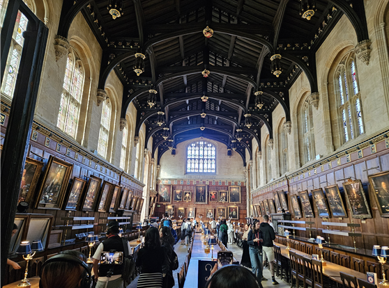 한국어 오디오 가이드와 함께 크라이스트 처치를 관람하니 매우 유용했다. 지나는 스팟마다 숫자가 명시되어 있어 가이드에서 숫자를 누르면 한국어 설명을 바로 들을 수 있다. 대학 건물 입구를 지나 마주한 웅장한 계단을 오르면 바로 연회장, 그레이트 홀(Great Hall)에 들어갈 수 있다. 영화에서 호그와트 마법학교 학생들이 모두 모여 식사하던 신비롭던 그 장소를 보게 되어 설레었다. 벽면에는 이 대학의 유구한 역사를 함께 했던 교수님들의 초상화가 가득하였고 많은 테이블이 깨끗하게 치워져 있었다. 현재도 실제 이곳의 학생들이 식사하는 곳으로 활용되어서 점심시간에는 입장이 금지된다고 한다. 문득 크라이스트 처치 대학의 학생들이 너무 부러워지는 순간이었다.