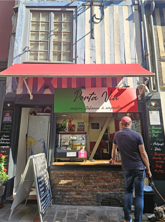 사과는 옹플뢰르의 특산품인데 이를 활용해 만든 와인이나 꼬냑이 유명하다고 한다. 가이드님의 소개로 어느 꼬냑 가게에 시음을 할 수 있었다. 사과주를 끓여서 만든 깔바도스라는 꼬냑인데 향이 풍미가 좋고 달달하여 기념으로 구매하였다. 마을 중심부에는 생트 카트린 성당이라는 오래된 목조 성당이 있다. 옹플뢰르는 2차 세계 대전에도 폭격이 이루어지 않았다고 하는데 이 성당 덕분이라는 말도 있다고 한다. 성당 맞은 편에는 목조 시계탑이 있는데 공중 화장실로 쓰이는 것이 인상적이었다. 운치 있고 한적한 바이킹 항구 도시를 둘러보면서 아기자기한 다양한 매력을 느낄 수 있었다. 투어 중이라 시간이 충분하지 않기에 점심은 간단히 길거리에서 피자를 사먹었다.