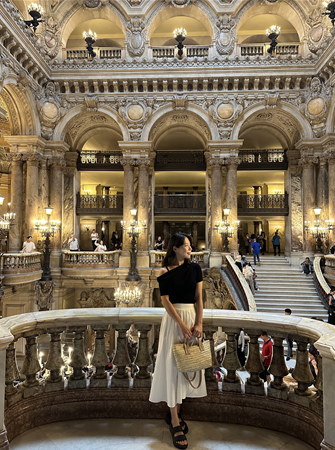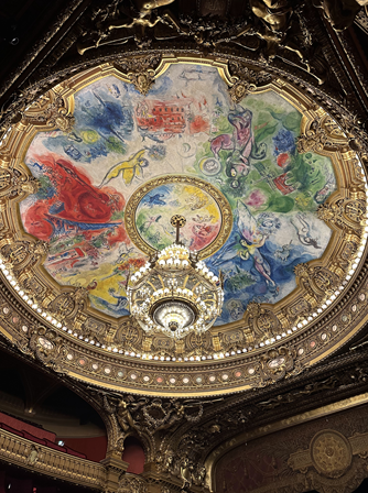 오페라 가르니에 건물에 들어가면 로비에서부터 화려한 장식으로 압도된다. 영화에서만 볼법한 고풍스럽고 우아한 건축과 조명이 사로잡는다. 워낙 아름다운 배경에 드레스를 입고 뽐내면서 사진을 찍는 여자들도 곳곳에 보인다. 화려한 로비를 지나 공연장에 들어가면 더욱 놀라게 된다. 정면에는 베토벤과 모차르트의 동상이 보이고 위로는 샤갈의 천장화, 샹들리에를 마주하게 된다. 이 샹들리에는 1896년에 추락한 적이 있는데 그것이 [오페라의 유령]에 각색되어 재현되어 있다. 기회가 된다면 이곳을 다시 한번 찾아 오페라를 꼭 관람해보고 싶은 생각이 들었다. 공연장을 나오면 그랑푸아예라는 화려한 복도같은 공간이 있다. 딱보고 베르사유 궁전의 거울의 방과 비슷하다는 생각이 들었는데 정말 그곳을 모티브로 만들어진 곳이라 한다. 이 황금빛 공간에서 귀족들이 공연 전이나 휴식시간에 친교 활동을 펼쳤다고 한다.