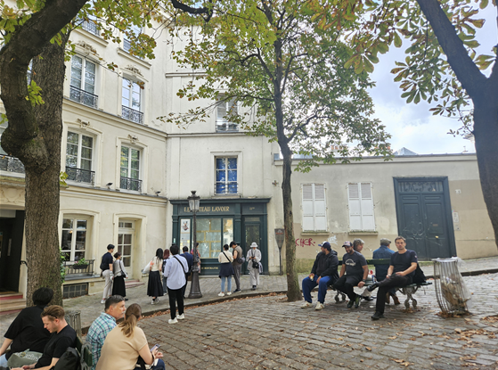 사랑해벽을 지나 올라가면 가파른 언덕에 벤치가 놓여있고 녹음이 우거진 곳이 있는데 이곳에 바토 라부아르(Le Bateau-Lavoir)란 곳이 있다. 다른 가이드팀이 이곳에 서서 설명을 듣는 모습을 듣고 관심이 가서 알아봤는데 굉장히 의미있는 장소였다. 세탁선이라는 뜻의 바토 라부아르는 과거 세탁방으로 쓰였던 의미가 아니라 사람이 살 수 없을 정도의 공간으로 센 강의 빨래터같이 생겨서 지어진 이름이라고 한다. 피카소, 모딜리아니, 앙드레 살몽 등 거장들이 이곳에서 머물며 그림을 그려서 유명해졌고 업계에서는 한번쯤 들어가서 작업을 해보고 싶은 공간으로 유명하다고 한다. 풍차 외관으로 유명한 맛집 Le Moulin de la Galette, 샹송 가수들의 공연을 보며 식사를 하던 Cabaret Au Lapin Agile 등 다양한 스토리와 재미가 공존하는 몽마르트를 구경하는 재미가 쏠쏠했다.