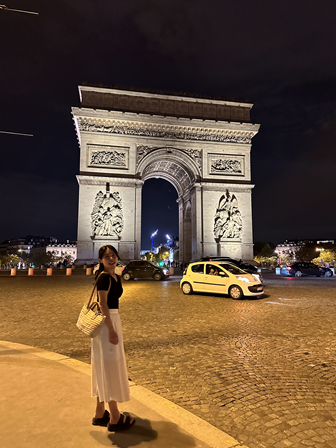 다음으로 에투알 개선문을 보기 위해 이동하였다. 루브르 박물관에서 샹젤리제 거리를 따라 3km 정도를 걸으면 개선문으로 이어지는데 지하철로도 바로 갈 수 있어 지하철로 이동하였다. 샹송으로 유명한 샹젤리제 거리는 폭이 넓어 많은 차량과 사람들이 지나다니고 있었고 가로수와 조명이 은은한 분위기를 연출하였다. 에투알 개선문은 샤를 드골 광장 한복판에 위치한 거대한 개선문으로 프랑스 혁명과 나폴레옹 전쟁에서 죽은 전사자들을 기리기 위하여 세워졌다고 한다. 개선문 안으로 들어가 높은 계단을 따라 올라가면 전망대까지 입장이 가능한데 뮤지엄패스 소지자는 무료 입장이 가능하다. 개선문 전망대에서는 샤롤 드골 광장에서 쭉 뻗은 각각의 거리들이 가로등과 함께 빛나는 아름다운 장관이 펼쳐지며 멀리 빛나는 에펠탑도 함께 볼 수 있다. 이곳에서 파리의 낭만에 다시 한번 깊게 빠지는 순간이었다.