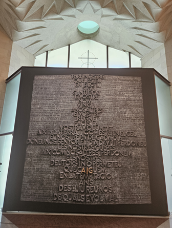 서울정은 가우디 거리 한복판에 위치하여 사그라다 파밀리아 성당 관람 전후로 식사하기 좋은 곳이다. 배불리 먹은 후 나온 가우디 거리는 화창했고 너무나 평화로웠다. 구름한점 없는 하늘에 떠있는 태양이 따뜻하게 도심을 덮어주고 있었다. 시간 맞춰 사그라다 파밀리아 성당에 입장하였고 앱을 다운 받으면 무료로 한국어 가이드 설명을 들으며 관람할 수 있다. 이곳은 환상적인 외관 뿐만 아니라 내부도 감동적이다. 가우디가 하나하나 신경써서 만든 기둥과 천장, 스테인드글라스는 너무나 아름다웠다. 또한 출구에는 '오늘 우리에게 필요한 양식을 주옵소서' 라는 기도문이 각 나라의 언어로 적혀 있는데 한글 문구도 있어 인상적이었다.
