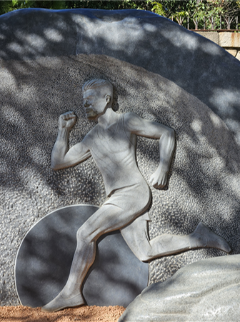 도착한 몬주익 언덕에는 뙤약볕이 따가울 정도로 비추고 있었다. 차는 별로 다니지 않았고 한산한 풍경이었다. 걷다 보니 어느새 몬주익 올림픽 경기장에 도착하였고 안에는 입장할 수 없었다. 사실 경기장보다 더욱 관심은 황영조 선수 기념석을 보는 것이었다. 경기장 맞은편에는 황영조 선수의 벽화와 태극기, 한국말로 두나라의 우정을 기리는 문구가 새겨져 있다. 지금 이렇게 이곳을 걷는 것만으로도 힘든데 황영조 선수가 이 언덕을 필사적으로 오르면서 달려 결국 우승을 했다는 것이 다시 한번 감격스럽게 느껴졌다.
