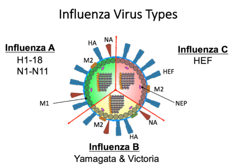 독감은 독한 감기라는 의미로, 인플루엔자(Influenza) 바이러스 감염에 의한 질환을 의미한다. 바이러스는 숙주에 침입하여 자기 복제를 일으켜 증식하게 되는데, 인플루엔자는 RNA 라는 유전체를 이용하여 증식한다. RNA 핵산을 둘러싸고 있는 단백질의 종류에 따라 A, B, C형 인플루엔자로 나뉜다. 셋 중 A형 인플루엔자가 전염성이 가장 강하고 증상이 심하며 사람 뿐만 아니라 조류, 포유동물들에 광범위하게 감염을 일으킨다. B형 인플루엔자는 사람만 감염이 되고 지엽적인 유행을 일으킨다. C형 인플루엔자도 때때로 감염되나 증상이 경미하고 산발적으로 발생하여 중요하게 다뤄지지는 않는다. A형 인플루엔자는 다시, 지방 외피 표면에 돌출된 두 가지 단백 H(hemagglutinin)과 N(neuraminidase)의 항원성에 따라 여러 아형으로 구분된다. 참고로 국내에서 주로 쓰이는 4가 백신은 A형 인플루엔자 2종(H1N1, H3N2)와 B형 인플루엔자 2종(야마가타, 빅토리아)를 대상으로 한 것이다.