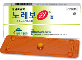 대표적인 사후 피임약은 크게 2종류로 노레보원정과 엘라원정이다. 사전피임약과 다르게 사후피임약은 의사의 처방이 필요하다. 노레보원정은 고용량의 레보노게스트렐(Levonogestrel)이라는 프로게스테론 유도체 성분이다. 프로게스테론은 적은 용량으로는 임신을 돕지만, 과한 용량으로는 배란이 안되도록 하고 여성의 호르몬 주기를 교란시켜 임신을 막는다. 성관계 후 최대한 빨리 복용할 수록 효과과 좋으며, 72시간 이후로는 효과가 없다. 24시간 이내 복용하면 95%, 48시간 이내 복용하면 85%, 72시간 이내 복용하면 57% 이상의 확률로 피임효과가 있다. 부작용으로는 메스꺼움이 가장 흔하며, 복용 3~4시간 이내에 구토하면 다시 복용하여야 한다. 그 외 부정출혈, 생리불순, 여드름 등의 부작용이 있을 수 있으나 1회 복용에 한해서는 뇌질환 및 심장 질환 환자도 복용 가능할 정도로 큰 부작용은 없다. 카피약으로는 세븐투에이치, 포스티노 등이 출시되어 있으며 같은 성분으로 어느 약을 먹더라도 효과는 동일하다.
