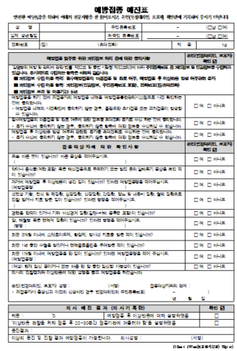 예방접종을 하기위해 소아과나 보건소를 찾아가게 되면, 예방접종 문진표라는 것을 작성하게 된다. 이는 예방접종예정자의 신상을 파악하고, 현재 예방접종을 맞기 위한 적절한 신체 컨디션인지를 체크하기 위한 것이다. 아픈 곳이 있는지, 과거 알레르기가 있는지, 특정 질환을 앓았던 적이 있는지, 경련이나 뇌신경계 질환을 앓았는 지를 확인하게 된다. 특히나 최근 스테로이드와 같은 면역억제제나 수혈을 받았거나, 면역글로불린을 투여받은적이 있다면 백신을 맞더라도 면역획득이 어려워 추후에 다시 접종 받길 권고 받기도 한다. 예방 접종 후에는 이상반응 관찰을 위해 20~30분간 접종기간에 머물러야 하며, 의사의 사인을 받은 뒤 접종을 받게 된다.