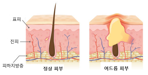 여드름이란 털을 만드는 모낭과 붙어 있는 피지선에 염증이 생기는 것을 말한다. 피지선에서 피지가 과하게 분비되거나, 털이 나오는 구멍인 모공이 막혀 피지 배출이 원활하지 않게 되면 피지 덩어리가 축적되고 세균이 증식하면서 염증이 생기게 된다. 빨갛게 염증이 심해지면 농을 형성하고 주위 조직에도 염증이 퍼져 심한 화농성 여드름으로 진행되기도 한다. 호르몬 변화, 세균 감염, 유전적 요인 등의 다양한 원인이 여드름의 발생과 관련이 있는 것으로 알려져 있다. 사춘기가 되면 몸에서 안드로겐이라는 남성호르몬이 분비되는데, 이 호르몬은 피지선에서 피지의 분비를 왕성하게 하고 여드름이 잘 생기도록 한다. 유전적 요인으로 남들보다 나이가 들어도 안드로겐 분비가 왕성하면 나이가 들어서도 여드름이 지속될 수 있으며, 특히 여성은 생리와 폐경 및 임신 등으로 성호르몬의 균형이 깨져 성인 여드름의 발병 빈도가 남자보다 높다. 또한 스트레스, 수면부족, 진한 메이크업, 당지수가 높은 음식의 섭취, 술담배 등의 생활 습관도 이차적인 피지 분비를 자극하는 요인이 된다. 스트레스를 많이 받게 되면 우리 몸에서 스트레스 호르몬인 코티솔의 분비가 늘어나 피지선을 자극하는데, 이는 성인 여드름의 주요한 원인이 된다.