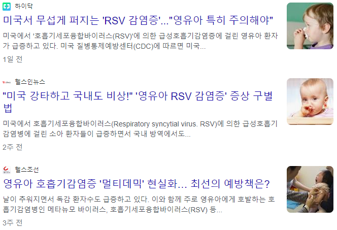 겨울이 다가오고 날씨가 쌀쌀해지면 인플루엔자 환자가 늘어나고, 최근에는 코로나 대유행과 함께 여러 바이러스가 함께 유행하는 경우가 많다. 낮은 온도와 건조해진 호흡기 점막은, 여러 호흡기 바이러스의 인체내 침입을 원활히 하며, 인체의 면역력을 감소시키게 된다. 이러한 호흡기 바이러스 중 특히나 소아에서 치명적인 바이러스가 있는데, 바로 호흡기세포융합바이러스 (RSV, Respiratory Syncytial Virus)이다.